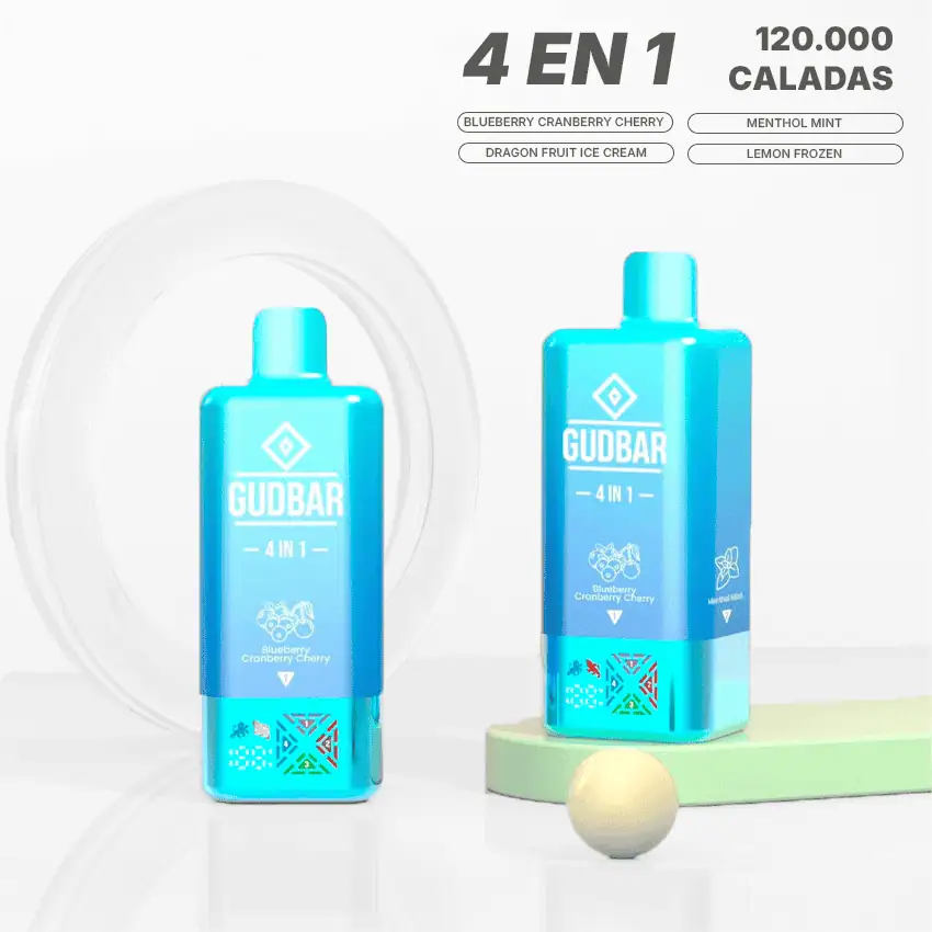 Gudbar 4 en 1 Blueberry (sin nicotina) es un dispositivo innovador que reúne cuatro sabores en un solo vape desechable, ofreciendo una experiencia versátil, intensa y sin complicaciones. Diseñado para quienes buscan variedad y comodidad, permite cambiar de sabor fácilmente girando la boquilla, sin necesidad de botones ni configuraciones.