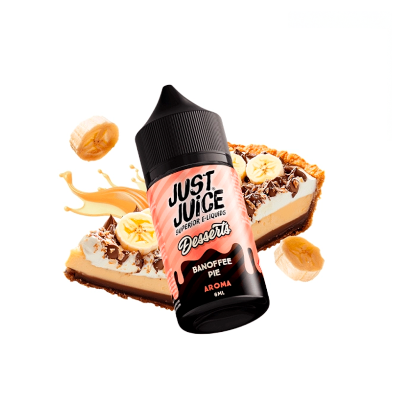 Just Juice Desserts Banoffee Pie Longfill es un aroma concentrado que rinde homenaje a uno de los postres británicos más emblemáticos. Cada calada combina la dulzura natural del plátano maduro con una base de galleta crujiente y un suave dulce de leche cremoso, todo envuelto en una nube de nata montada y un delicado toque de chocolate. El resultado es un perfil gourmand profundo, equilibrado y muy envolvente, ideal para quienes disfrutan de sabores dulces con carácter repostero.