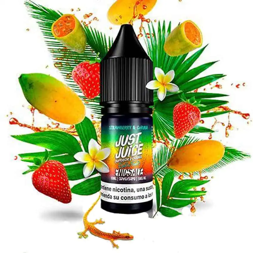 Just Juice Nic Salt Exotic Fruits Strawberry & Curuba. Complace tu paladar con esta mezcla de sabores de la curuba sudamericana y la dulzura veraniega delas fresas británicas. Una combinación que quizás aún no conozcas, pero de seguro al probarlo, no se te olvidará.