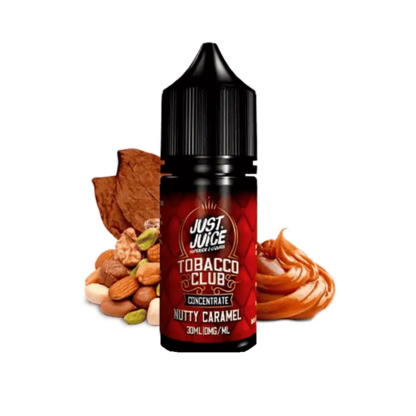 Just Juice Tobacco Club Nutty Caramel Concentrate 30ml. Este concentrato se creó para reproducir aquel sabor de tabaco dulce que se produce en las región de Condega, considerado el tabaco de mayor calidad del mundo, añadiendo un toque de caramelo. Un tabaquil dulce que no podrás dejar de vapear.