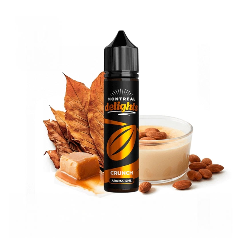 Montreal Delights Crunch ofrece una receta rica y envolvente donde la suavidad de la natilla de almendras se funde con un caramelo mantecoso y un delicado fondo de tabaco premium. El resultado es un perfil cremoso, tostado y perfectamente equilibrado, que combina dulzor elegante con profundidad aromática sin resultar pesado.