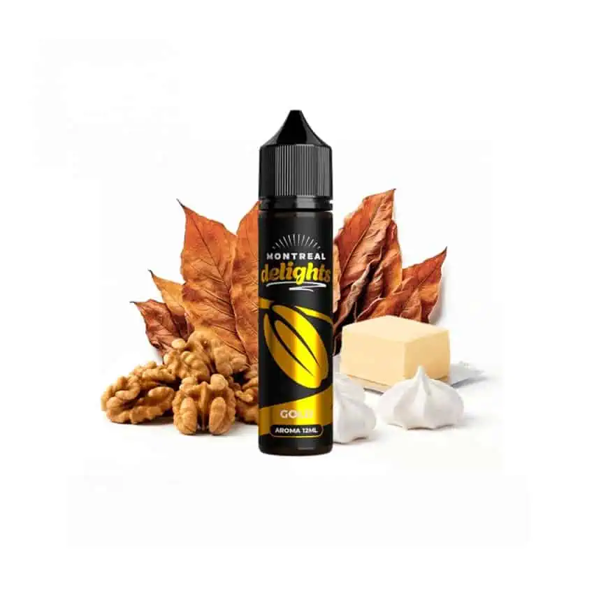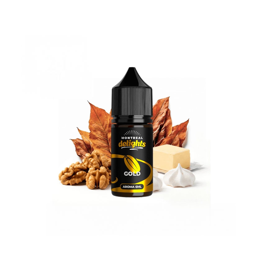 Montreal Delights Gold es una receta sofisticada que combina la suavidad de la crema de mantequilla con el carácter de las nueces tostadas y la ligereza de un merengue delicado, todo ello realzado por un sutil fondo tabaquil característico de Montreal Original. Gracias a su exclusivo proceso de extracción mediante ósmosis inversa, el tabaco se presenta limpio, seco y realista, aportando profundidad sin eclipsar el perfil dulce.